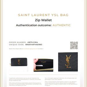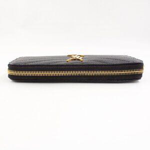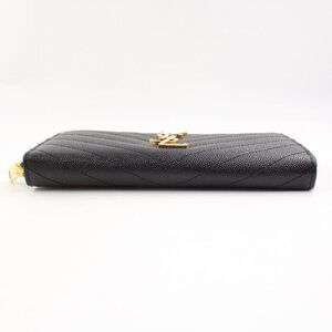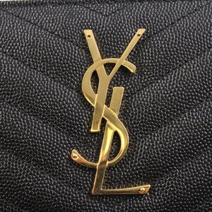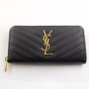 NWOT Saint Laurent YSL Large Zip Wallet in Black Grained Leather/Gold Hardware