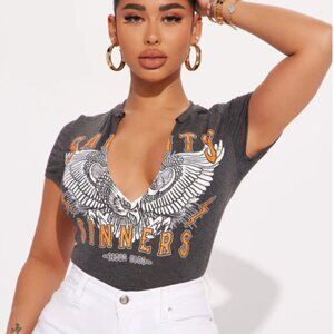NWOT - Saints and Sinners Graphic Bodysuit - Charcoal