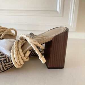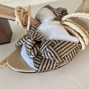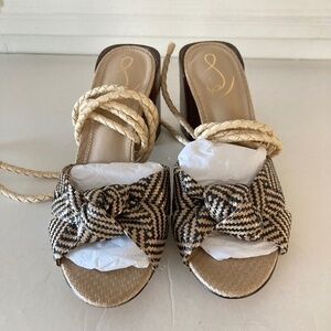 NWOT Sam Edelman Anthropologie Bodhi Black & White Raffia Peep Toe Heels Sz 9