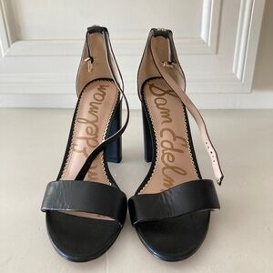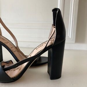 NWOT Sam Edelman Anthropologie Yaro Black Leather Ankle Strap Heels Sz 9