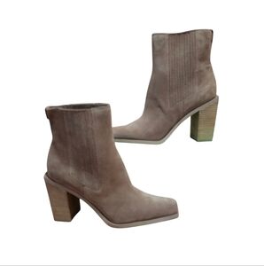 NWOT -Sam Edelman Emalia Taupe Block Heel Pull On Leather Ankle Boots - Size 9.5