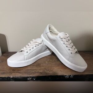 Experience the perfect blend of style and comfort with these Sam Edelman white athletic shoes. Featuring a minimalist design, these shoes boast an all-white leather-like upper, a low-top silhouette, and a padded collar for added comfort. Ideal for any casual occasion, they offer a versatile look that pairs effortlessly with any outfit.