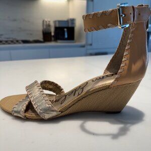 NWOT Sam Edelman Gold & Natural Wedge Sandals 10 1/2