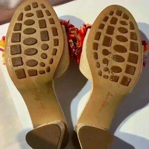 So festive and cute the outer is covered in natural grass fibers and the toes are embellished with popping “paper” flowers. ¡MUY caliente!