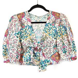 NWOT ♡ Sandro Paris ♡ Iram Linen and Shantung Silk Blend Cropped Blouse - Size 6