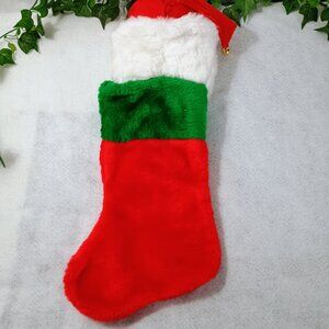 NWOT: Santa Stocking Red, Green & White Plush Christmas Jingle Bells sz see decr