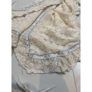 NWOT Sarah Louise White Knitted Baby Shawl with Blue Ribbon. Paid $99.