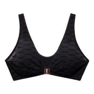 NWOT Savage X Fenty Flocked Logo Sheer Wireless Bralette in Black Women's Large