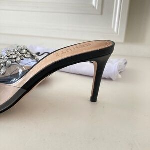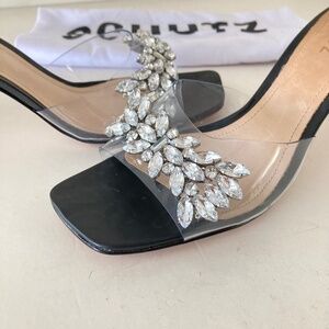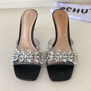 NWOT Schutz Anthropologie Shary Low Rhinestone & Crystal Black Heels Sz 7
