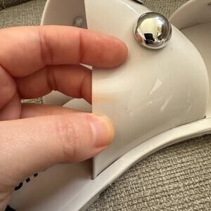 note: faint orange mark on inside strap and bottom // a few darker marks on sole of shoe (shown)