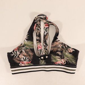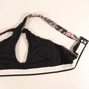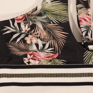 Turn off notifications, as you turn up the heat in Ocean Alley Cross High Neck Tank Bikini Top by Seafolly. Reminiscent of a tropical Hawaii paradise, retro florals and foliage contrast on a block colour backdrop