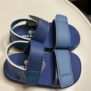 NWOT See Kai Run Basics water-friendly sandals in size 4. These bright blue sandals are perfect for toddlers on the go—great for water play, park days, and everyday summer fun. Featuring a lightweight, flexible sole and adjustable hook-and-loop straps, they’re designed for comfort and easy on/off. Though they no longer have tags, they’ve never been worn and come from a clean, smoke-free home. A durable, stylish option for warm-weather adventures!