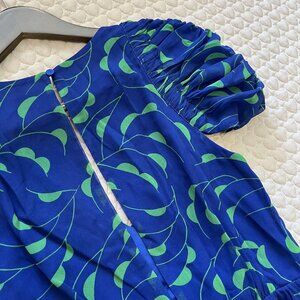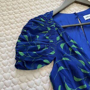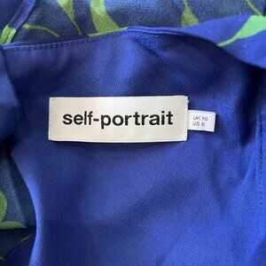 NWOT Self Portrait Blue Crescent Chiffon Midi Dress Cut Out Back Ruffle Size 6