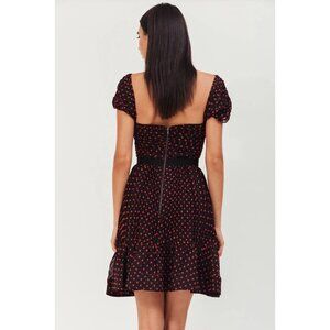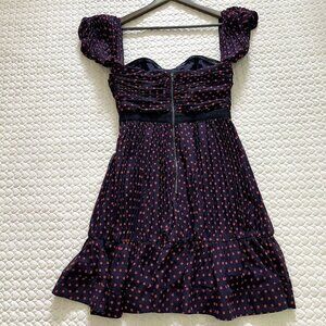 NWOT Self Portrait Plumetis Black & Red Polka Dot Mini Dress US 6