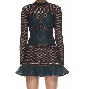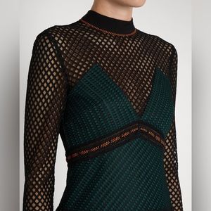 NWOT Self Portrait forest' Mixed Fishnet Mini Dress In Dark Green Size 6