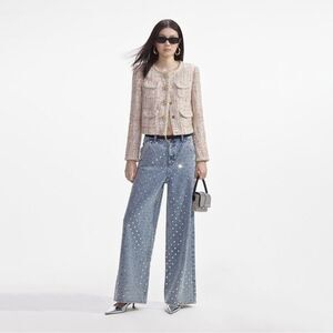 Brand new without tags US4 and US6 available A suits-all piece for every event, this jacket is cut from pastel bouclé for a bright mood. The boxy silhouette gives it a relaxed feel, further accented by braided trims and diamanté buttons. True to size This style has minimal stretch Snap popper closure down front Functional pockets Shoulder pads