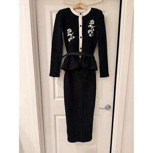 NWOT Self-Portrait BLACK FLORAL TEXTURED KNIT MIDI DRESS, special occasion dress