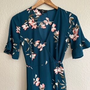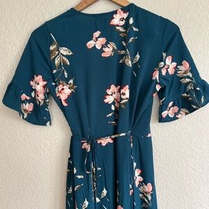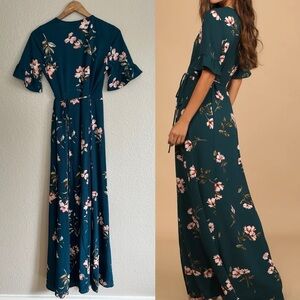 NWOT September Sunsets Dark Teal Floral Print Wrap Maxi Dress