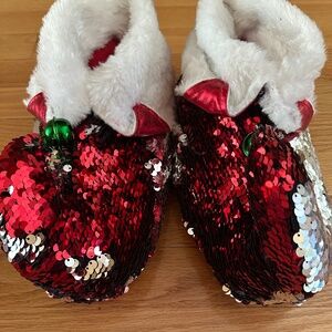 NWOT Sequin Elf Slippers Size S/M Red Silver Sequins