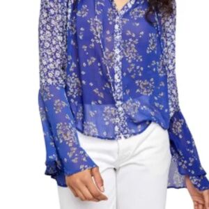 Love the vibrant blue and floral print just in time for spring! The bell sleeves give this such a chic boho vibe. Perfect paired with denim or shorts. Never worn, brand new condition. Smoke free home.