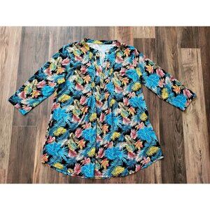 NWOT Serengeti Multicolor Tropical Hawiian Print 3/4 Sleeve Tunic Top Sz L