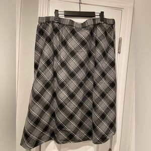 NWOT Serengeti Size 1X Black Gray Plaid Front Pleated Elastic Waist Maxi Skirt