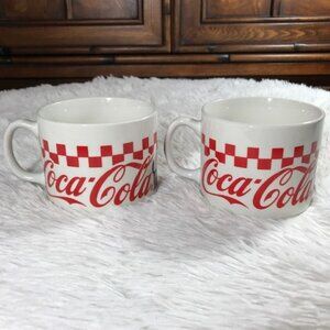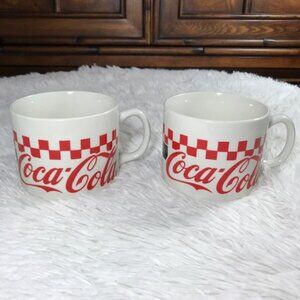 NWOT Set of 2 Vintage Coca-Cola Checkered Large Stoneware Mugs