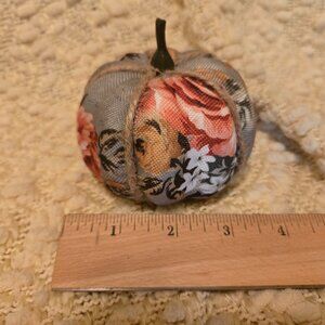 Set of 3 adorable Farmhouse fabric pumpkins are under 4 inches in diameter. The colors are sage, terre cotta, gold, and cream accented with jute. These are light weight and perfect for Fall. Never used.