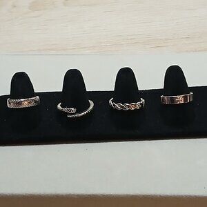 NWOT Set of 4 Fashion Jewelry Silver/White Tone Slim Womens Rings Adjust. #4