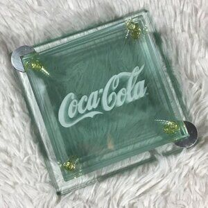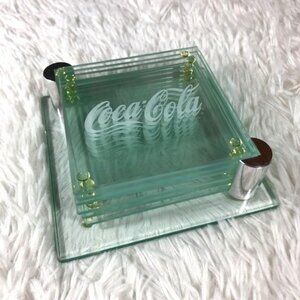 NWOT Set of 6 Coca-Cola Georgia Green Glass Coasters with Holder