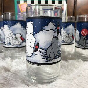 NWOT Set of 6 Vintage Coca-Cola 'Cubs and Seal' Decorated 16oz Glasses Set