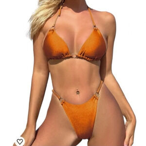 NWOT Sexy Women 2 Piece Triangle Bikini Spaghetti Strap Swimsuits Solid Color