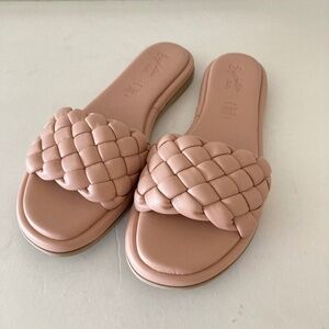 NWOT Seychelles Free People Wilma Woven Pink Leather Slide Sandals Sz 10