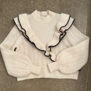 NWOT Sezane Mohair Blend Cream Frill Black Trim Sweater