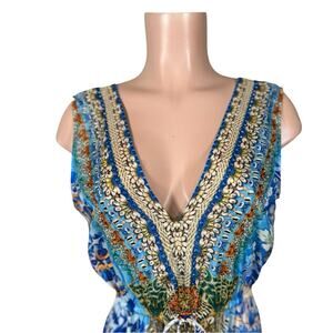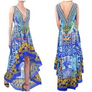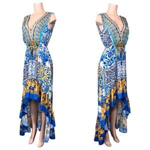 NWOT Shahida Paradies HIGH LOW RUFFLE BLUE DRESS SZ M/L $449