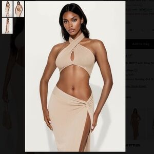 NWOT Shayla Ribbed Halter Maxi Skirt Set - Taupe