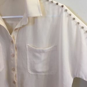 Sheer, creme colored button up blouse with studs along sleeve.✨ NEVER WORN! 🌟