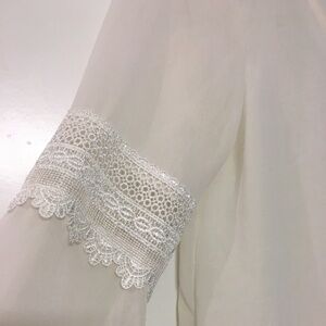 Boho style Sheer Ivory Top With Bell-Flare sleeve with Crochet Sleeve detail. Never worn, no tags, in excellent condition.