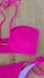 Stylish bikini set in vibrant pink. Features a textured design with gold accents.