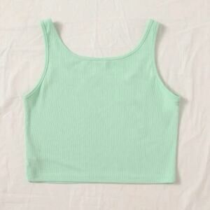 NWOT Shein Mint Green Ribbed Scoop Neck Cropped Tank Top Women’s Size Small