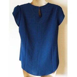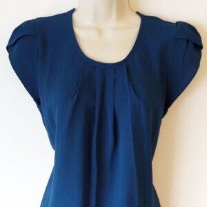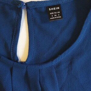 NWOT Shein Pleated Petal Sleeve Blouse M Royal Blue