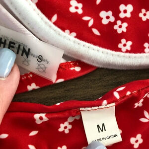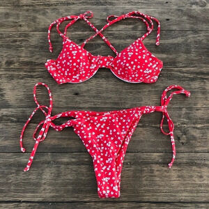 NWOT Shein Red Two Piece Floral Print High Cut Bikini Swimsuit Set Underwire S/M