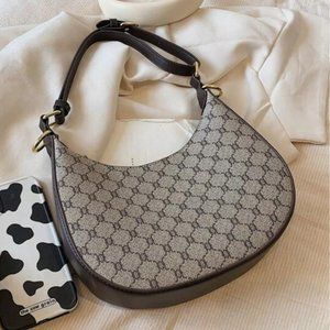 NWOT Shein Retro Y2K Style Geometric Print Brown Baguette Bag