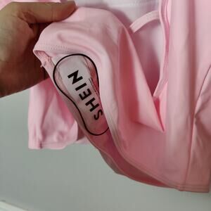 New without tags Shein one piece swimsuit in baby pink. Ruffle straps with an open cut out back. No tags, but the liner is still in place.