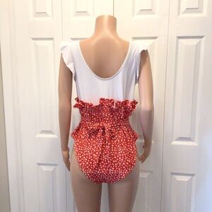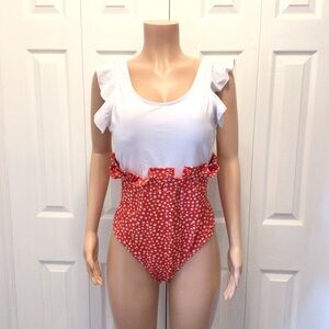 NWOT Shein Womens Plus Size Red Ditsy Floral Ruffled One Piece Swimsuit Size 3XL