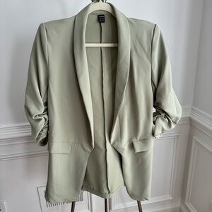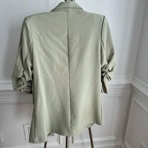 Chic and versatile blazer. Ideal for professional or casual wear. Faux pockets on front, ruched sleeves design, new, never worn, size small.