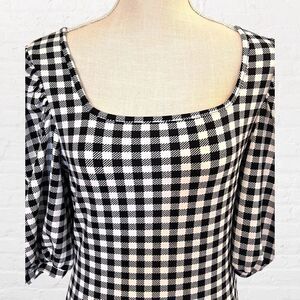 NWOT Shein, Medium, Black Checkerboard Puff Sleeve Boat Neck 3/4 Sleeve