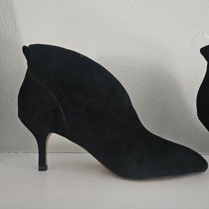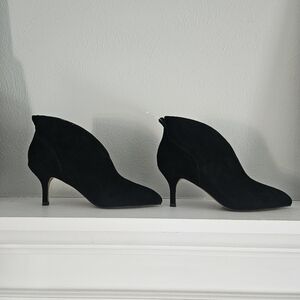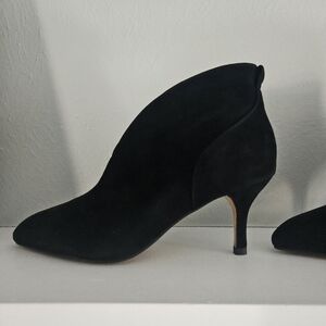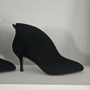New without tags/New without box- Shoe the Bear brand all black suede ankle boot heels featuring 100% suede, leather inner lining, rubber outsole, modern pointy toe and a 7.5 cm (2.953 in) heel height and a 10 cm shaft height. Size Euro 37 which is a US womens 6/6.5.