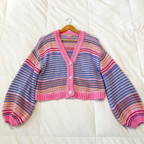 NWOT Show Me Your Mumu Good Karma Cardi Pink Multi Stripe Knit Sweater XS