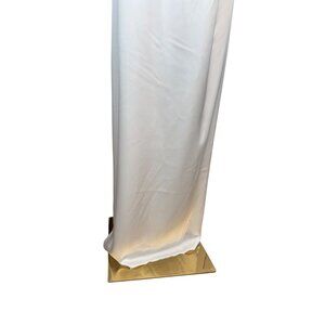 Pristine white fabric, fully lined formal. Right side has a slight ruching near waistband. See picture.